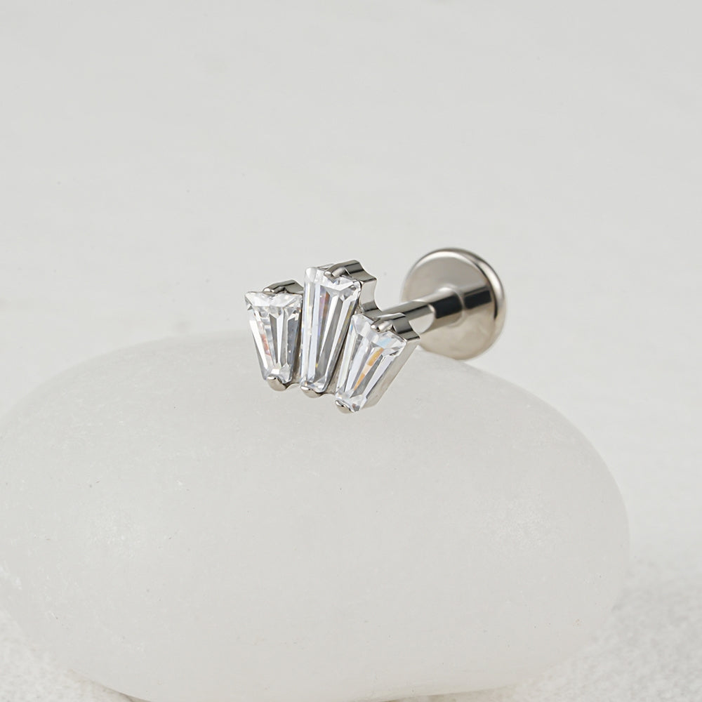 Terminale in titanio con 3 zirconi baguette, con il centrale più grande