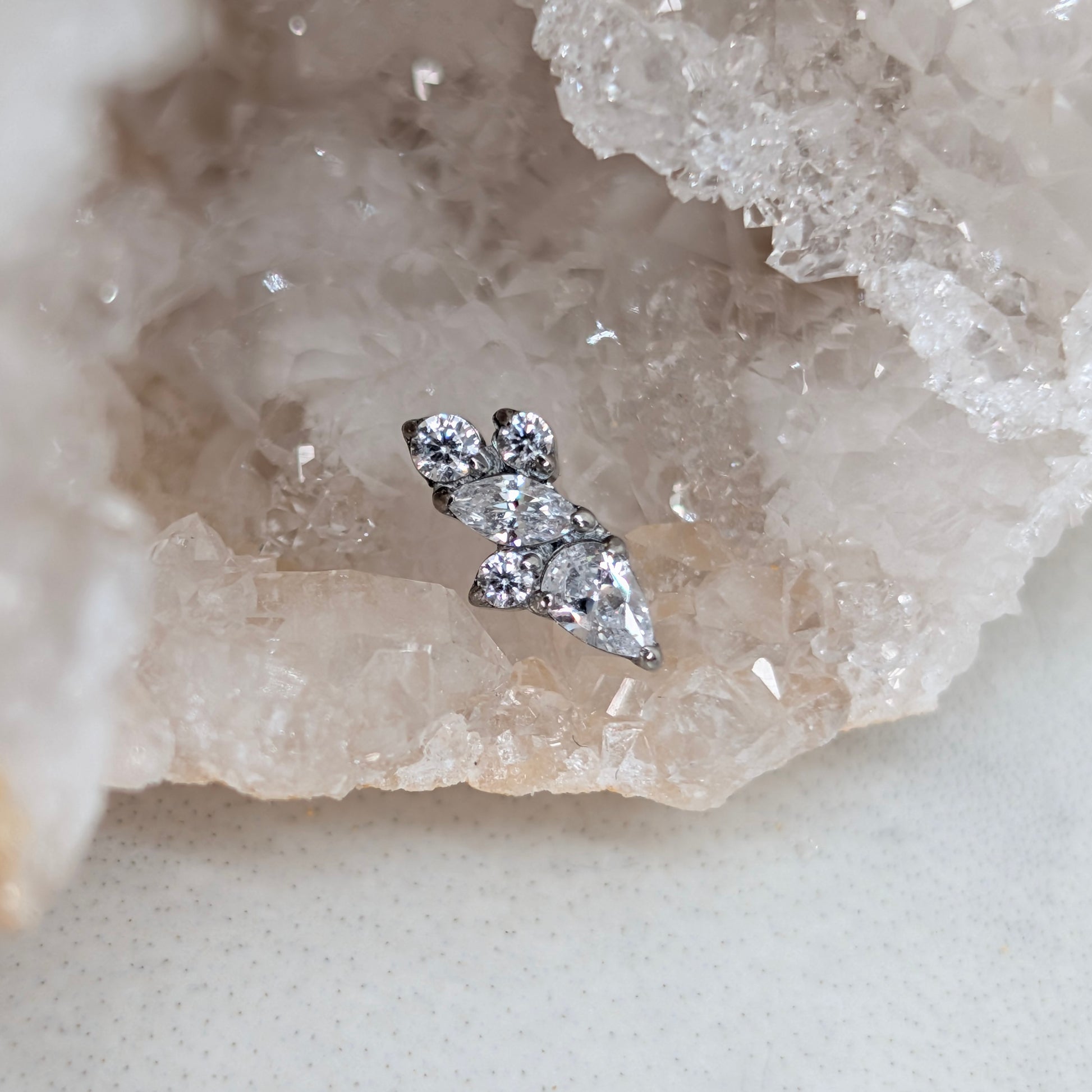 Terminale in titanio con zircone grande marquise e differenti zirconi tondi e marquise