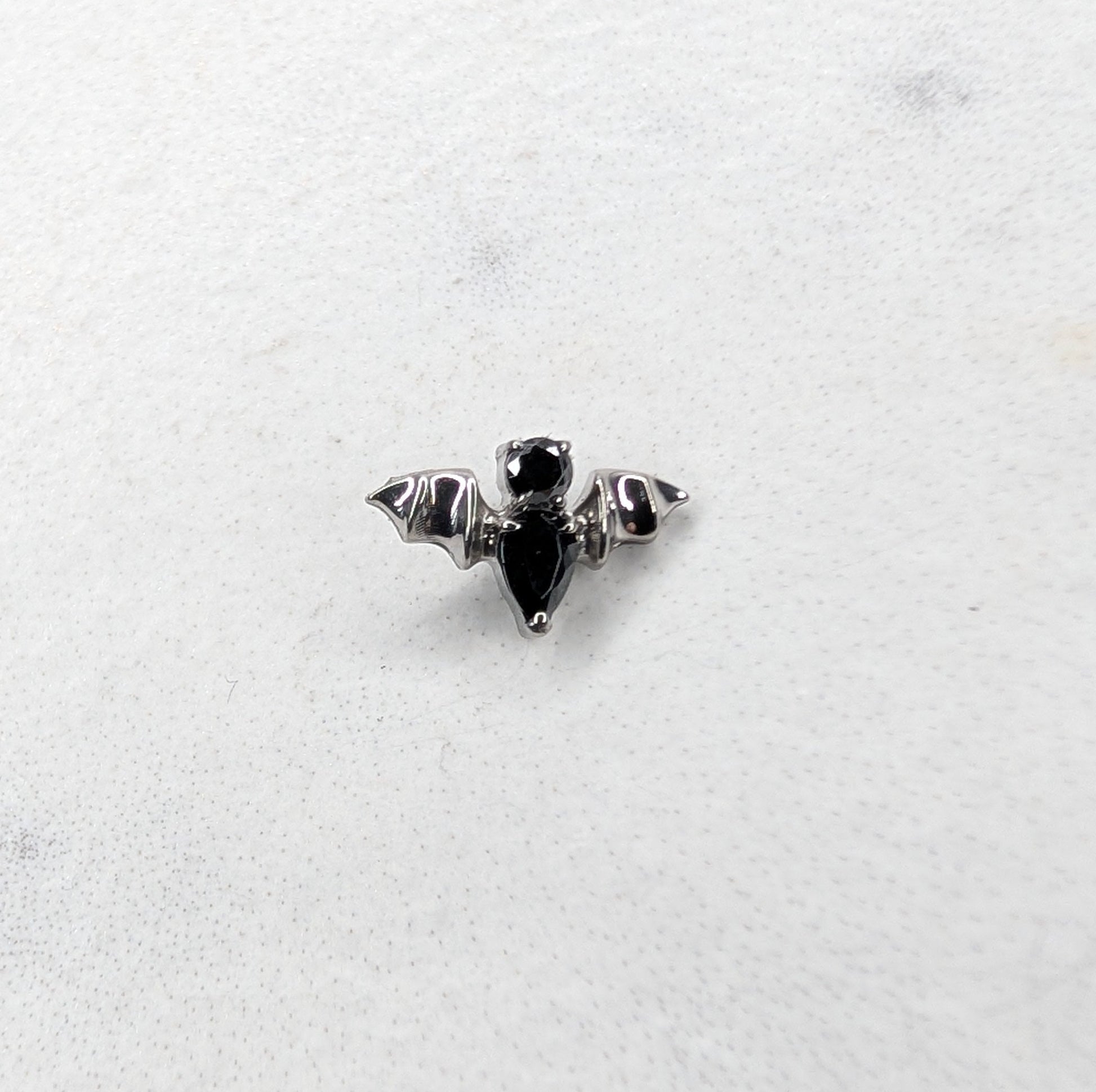 Terminale in titanio a forma di pipistrello con corpo e testa composti da zirconia cubica nera