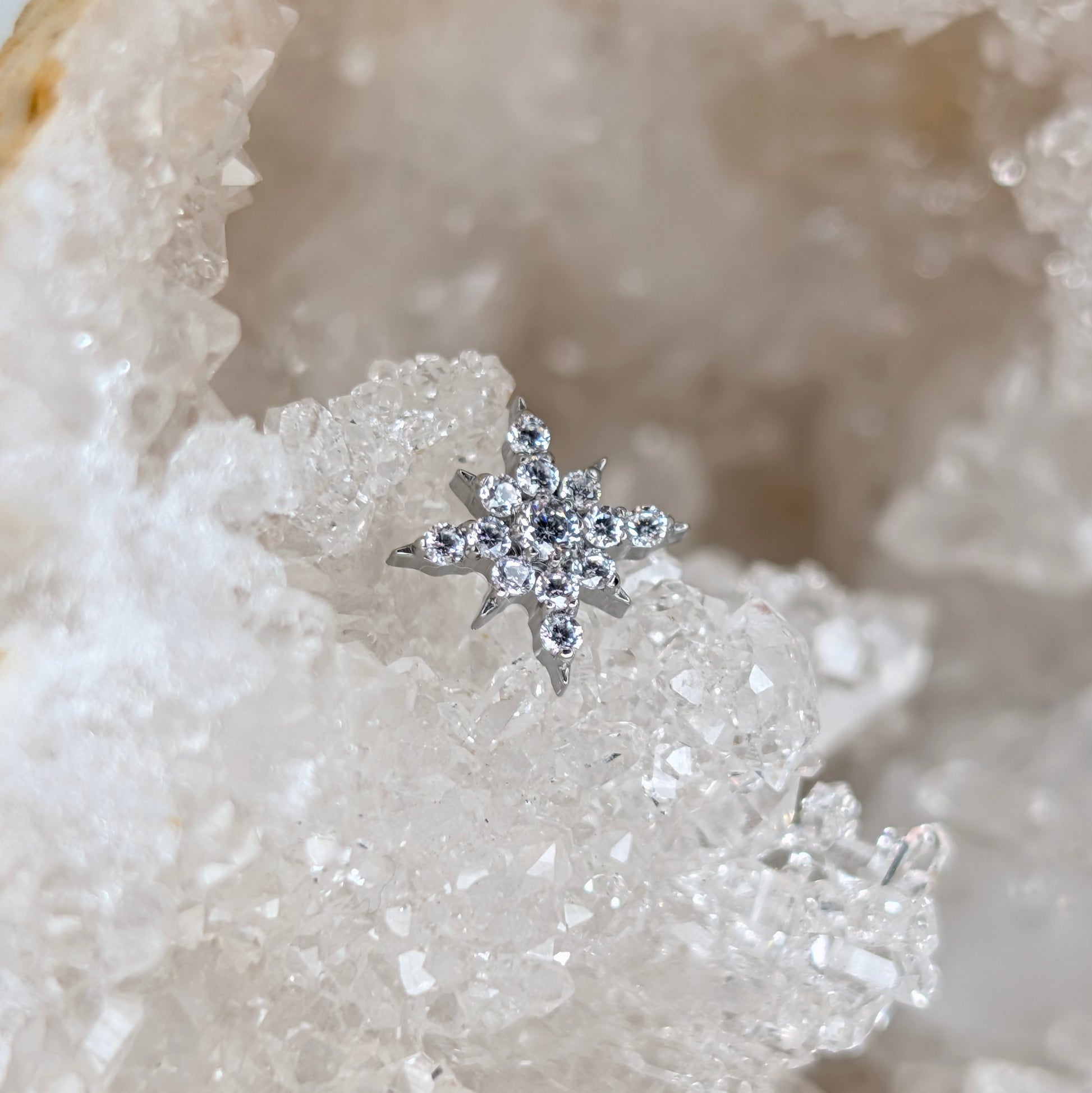 Terminale in titanio a forma di stella a8 punte coperta di zirconia cubica bianca tonda