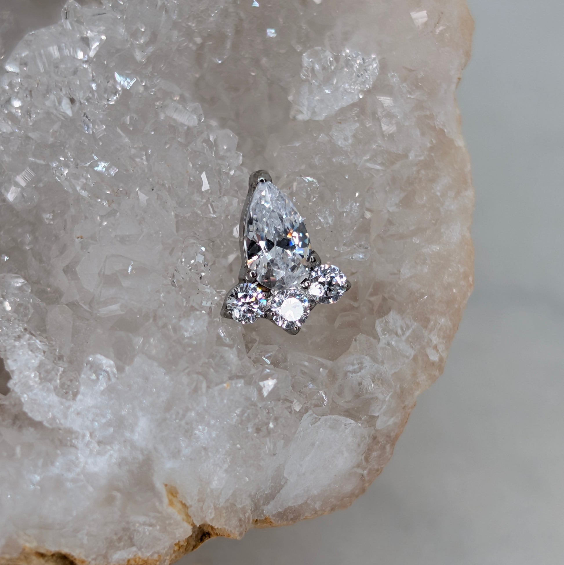 Terminale in titanio zircone a goccia grande e 3 zirconi piccoli tondi