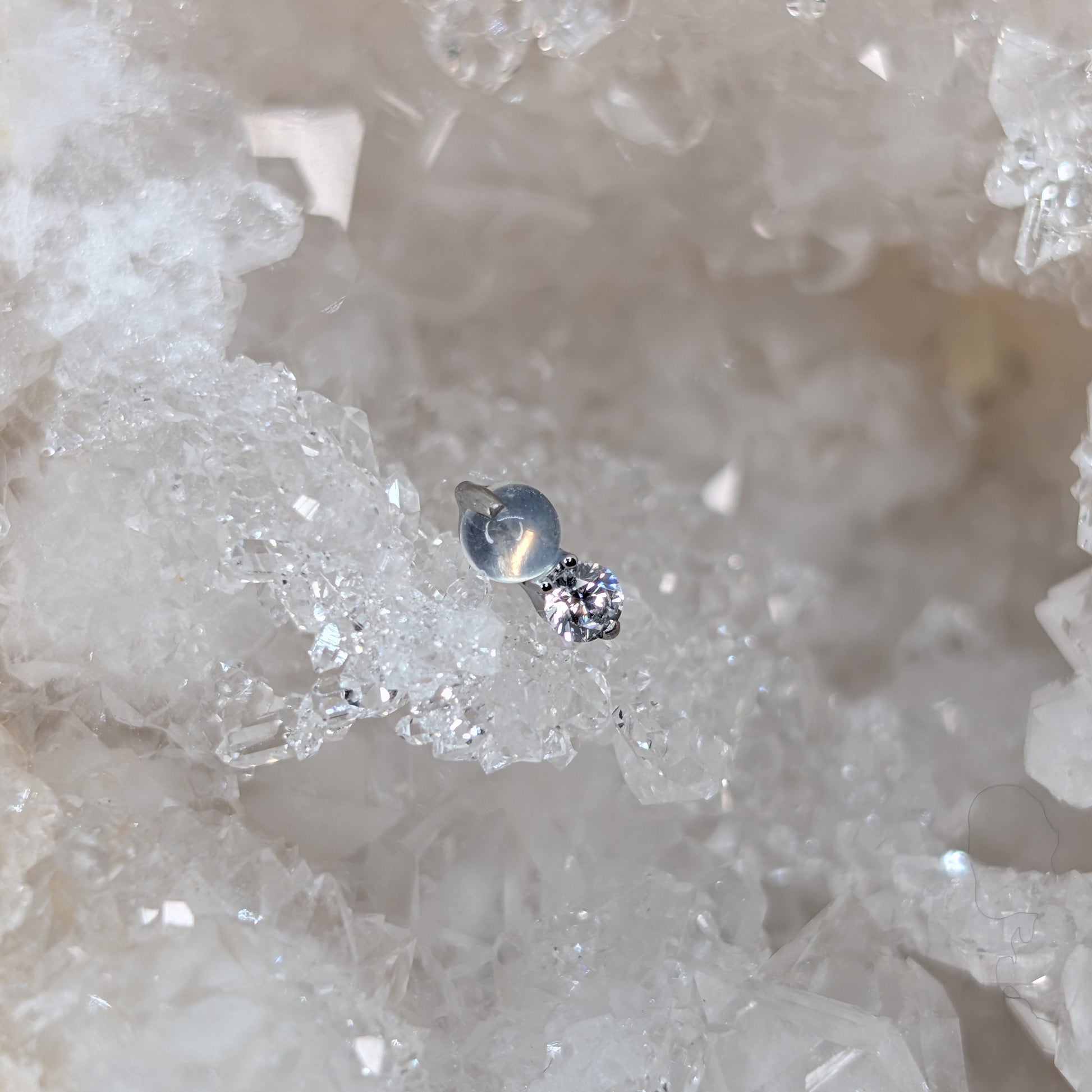 Terminale in titanio con opale tondo bianco e zirconcino tondo