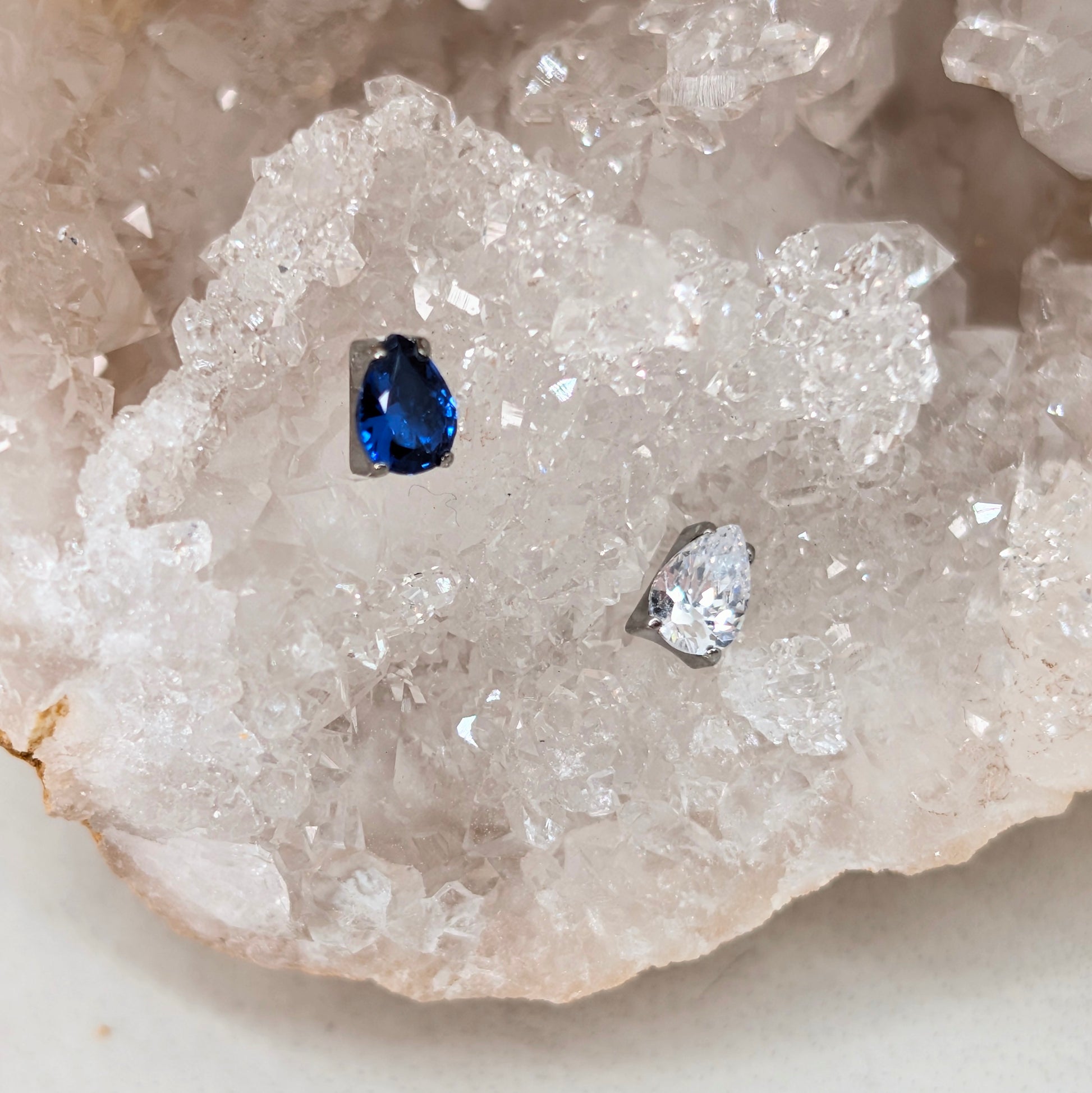 Terminale a goccia di zirconia cubica, disponibile in bianco e blu