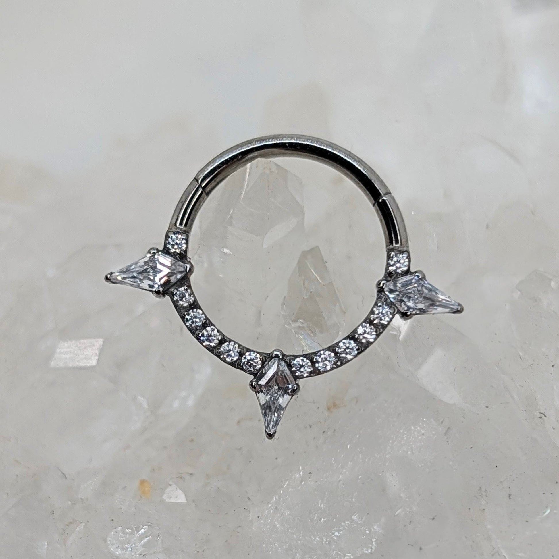 Clicker in titanio con giro di zirconi tondi e tre kite