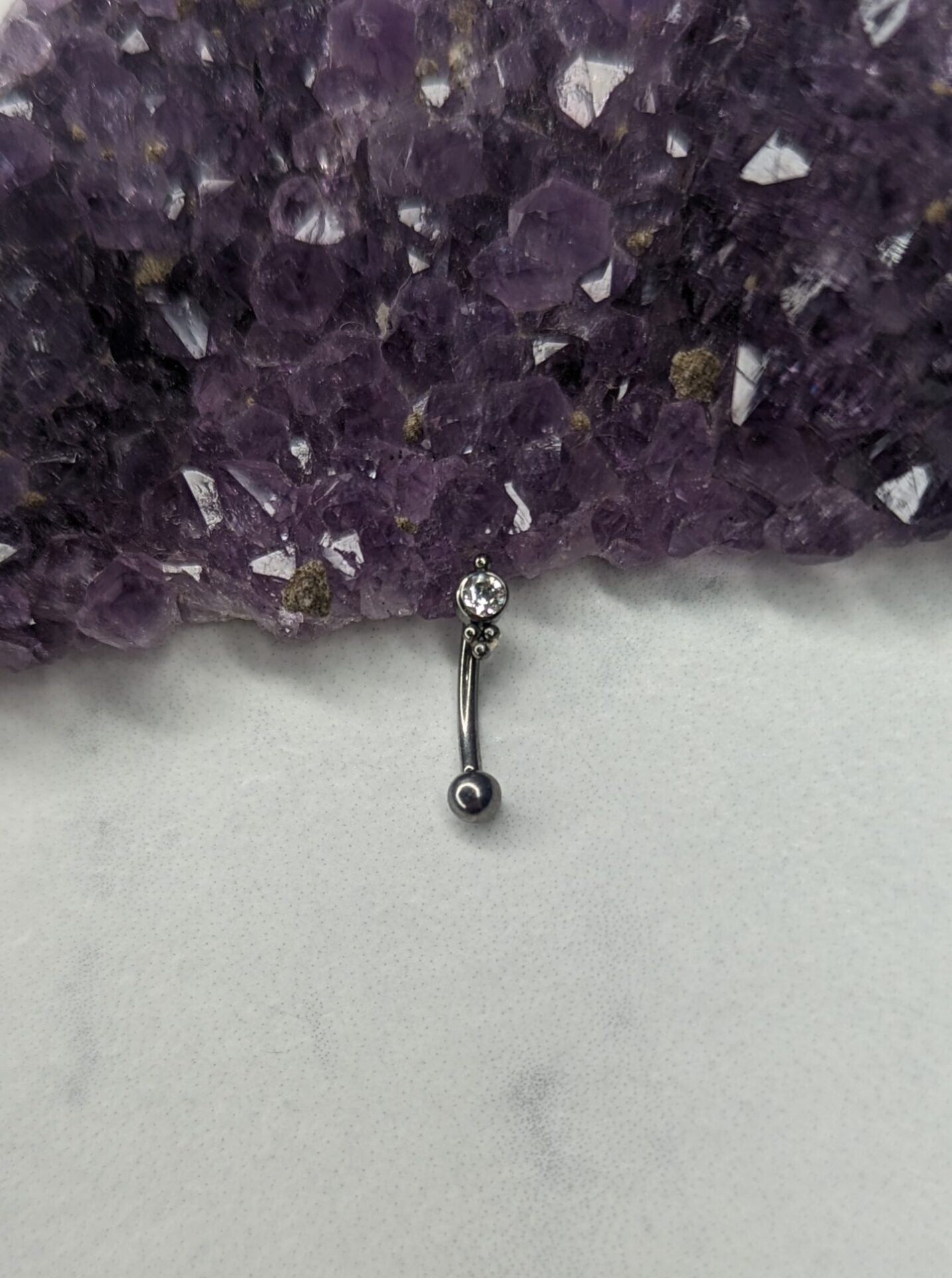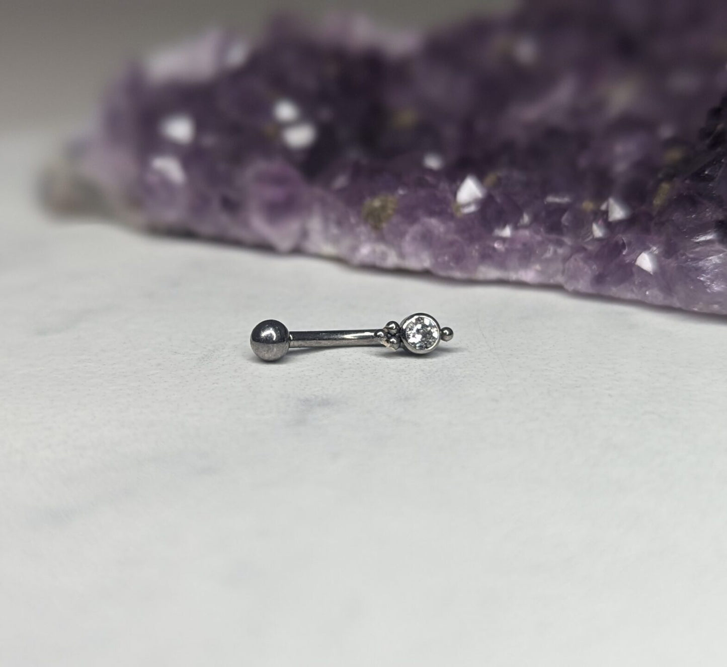 Barra curva in titanio con terminale fisso con zircone tondo e beads e pallina da 3mm removibile