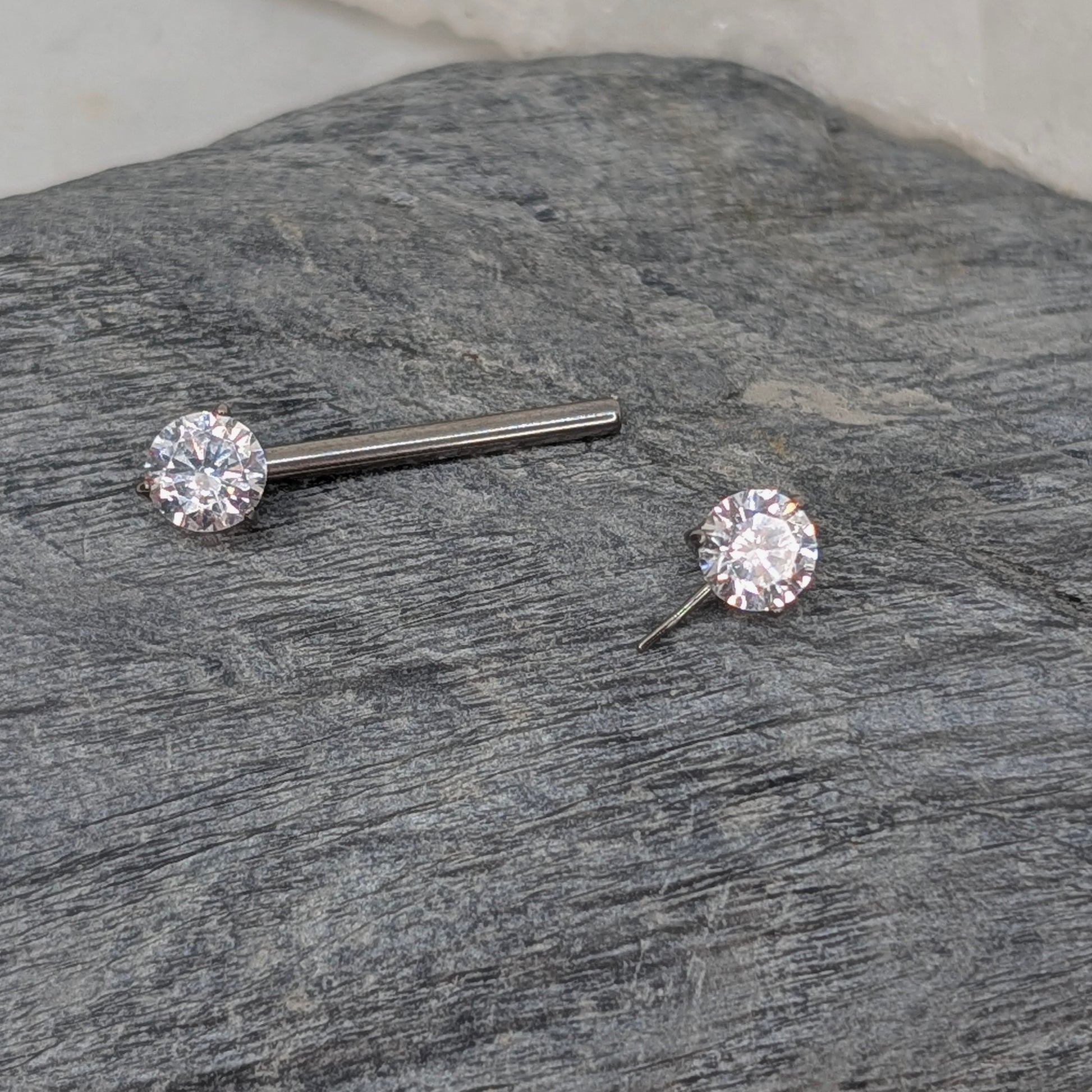 Barretta con due terminali threadless con una gemma zirconia cubica bianca