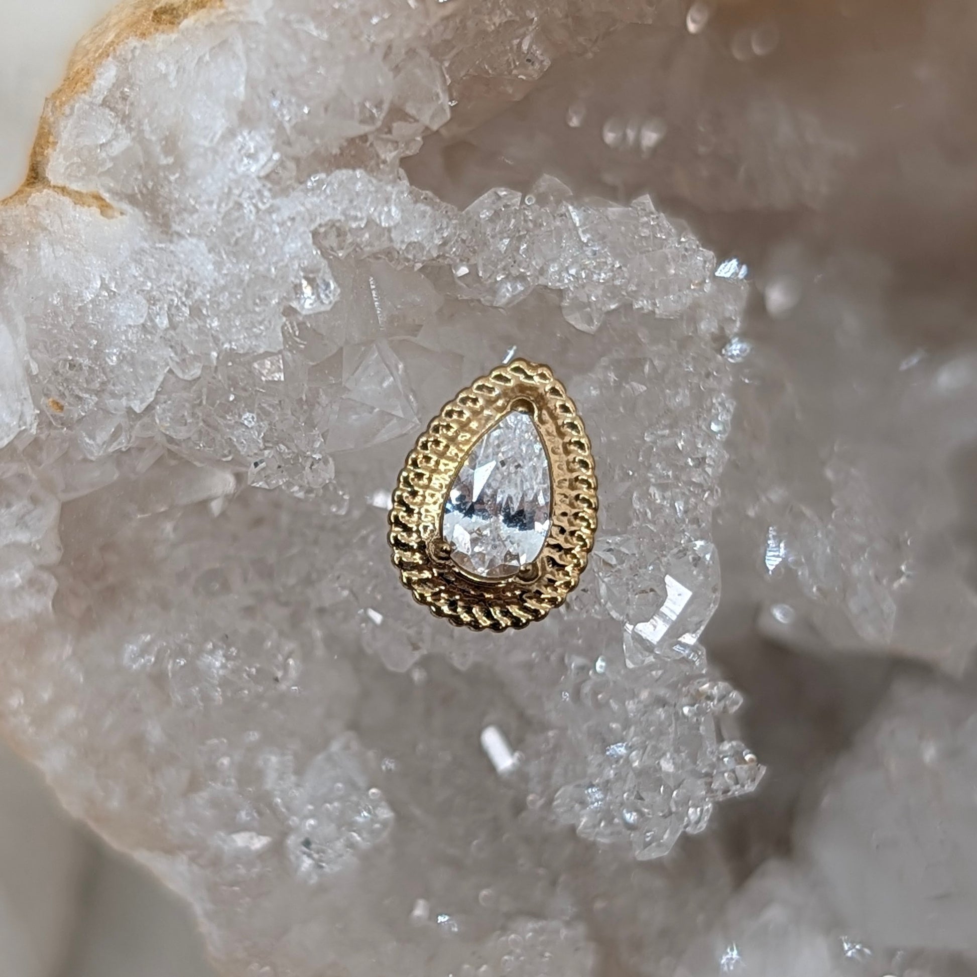 Terminale in titanio con goccia di zirconi cubica centrale e lavorazione PVD oro perimetrale